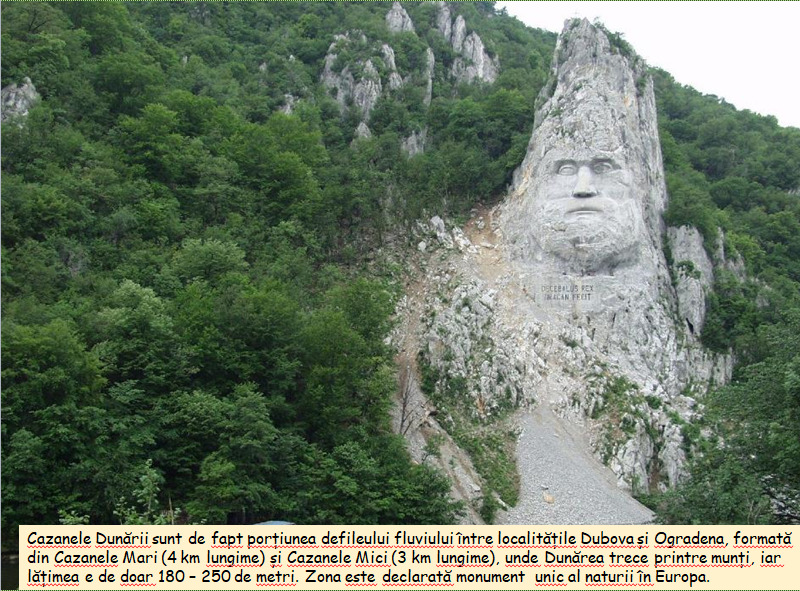 Cazanele sunt un sector din defileul Dunării la trecerea prin Munții Carpați. Au o lungime de circa 9 km. Fluviul este mărginit de pereți verticali, stâncoși. Cazanele Dunării și masivele Ciucarul Mare / Ciucarul Mic fac parte din Parcul Natural Porțile de Fier. Aproape de golful Mraconia, se poate observa, săpat în stâncă, chipul lui Decebal, statuia lui Decebal având dimensiunile de 55 m – înălțime și 25 m – lățime, cea mai înaltă sculptură în piatră din Europa.