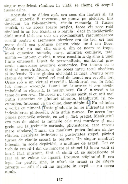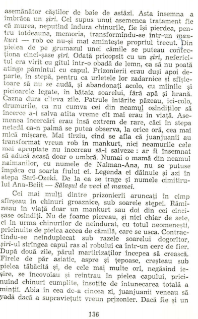 Cât de bine se potrivește acest tip de om cu deceniile totalitarismului, când fiii și-au trădat părinții, lepădându-se de familie, pentru a se conforma cerințelor statului și ale tătucului lor, Stalin… În cazul lor, e vorba de o renunțare de bunăvoie la conștiință și memorie, un fapt mult mai cumplit decât povestea tragică a mankurtului creat cu forța de juanjuani.