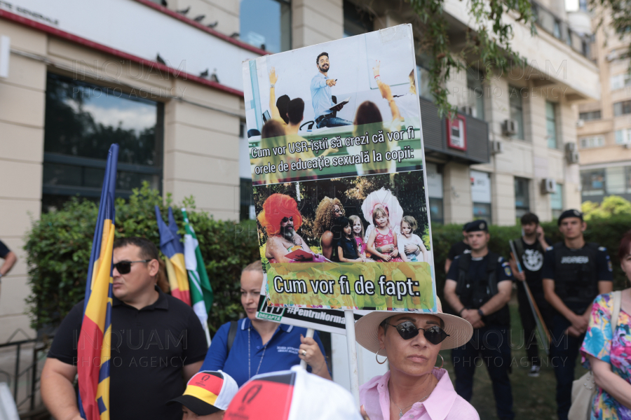 Oamenii au avut steaguri tricolore și pancarte pe care se putea citi „Stop parteneriatelor, căsătoriilor și adopțiilor homosexuale”, „Nu promovării ideologiei de gen”, „Nu îndoctrinării sexuale în școli”, „Nu LGBT”.