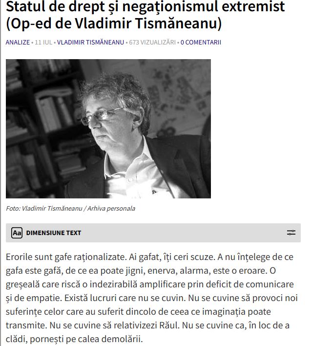 Acest gest vine în ciuda criticilor pe care și le-a primit pentru altă decizie, cea de a trimite Legea Vexler la CCR în cadrul unei sesizări de neconstituționalitate. La acel moment, tot felul de antiromâni alogeni ca Tismăneanu au început să fumege de ciudă.