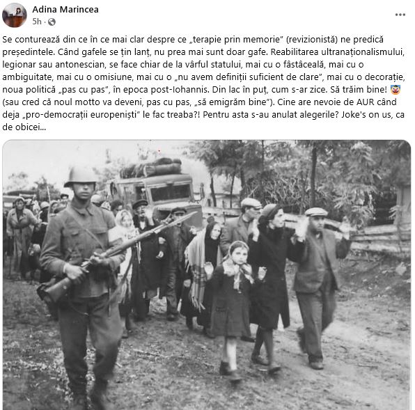 Adina Carincea a reacționat într-un smiorc pe Facebook, în care își dă în sfârșit seama că am memat un legionar la putere cu ajutorul votului lor, iar zilele institutului la care lucrează sunt limitate.