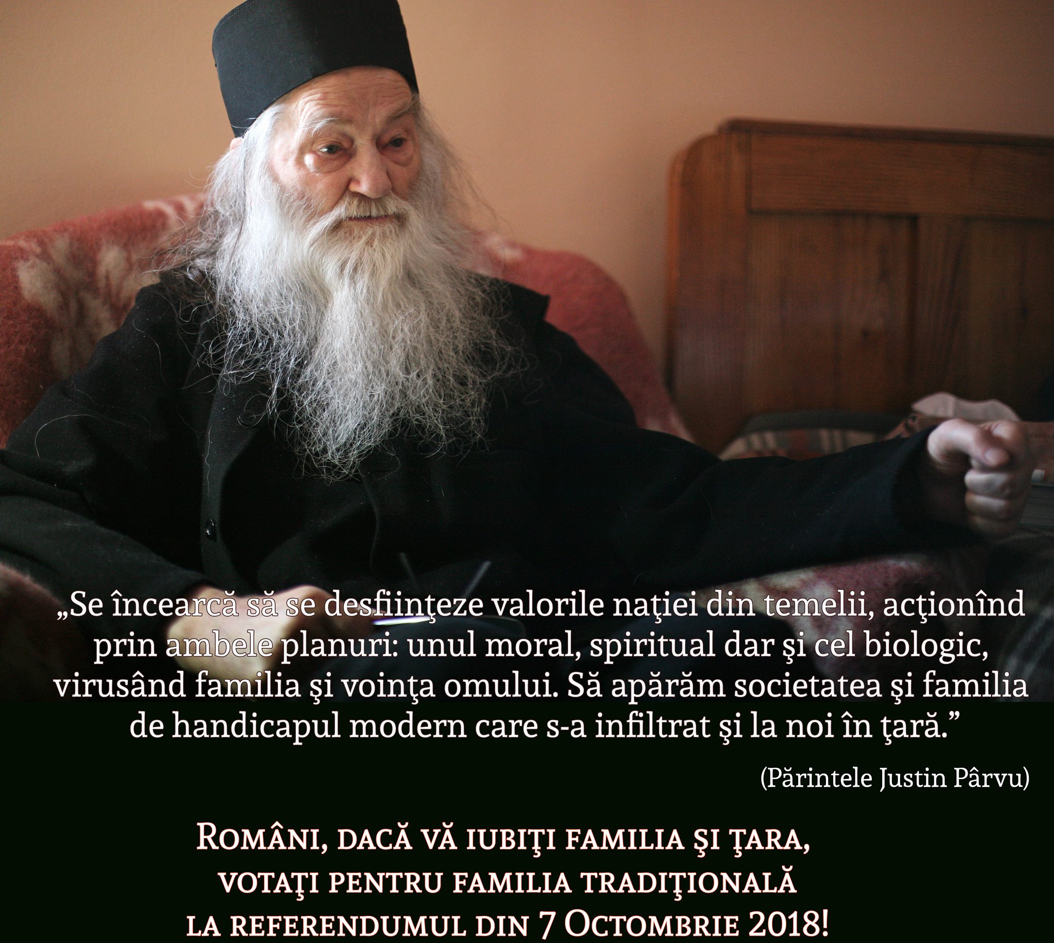Mănăstirea Petru Vodă, ctitorită de marele duhovnic al Ortodoxie, vrednicul de pomenire Părintele Justin Pârvu, prin semnătura Arhimandritului Hariton Negrea și a întregii obști, cheamă românii la Referendumul pentru Căsătorie într-un apel mișcător în care se evocă datoria de român față de trecutul, prezentul și viitorul României.