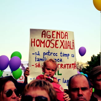 1. față de parada homosexualilor, o manifestare cu caracter obscen și provocator care promovează în fiecare an ideea legalizării căsătoriilor homosexuale și adopțiilor de copii de către „cuplurile” de homosexuali.