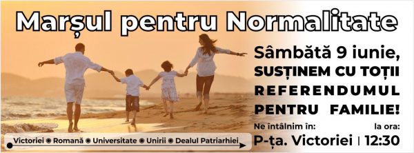 Organizat de Noua Dreaptă și susținut de mai multe asociații care promovează normalitatea în societatea românească, MARȘUL PENTRU NORMALITATE exprimă protestul românilor care susțin valorile familiei tradiționale: