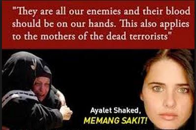 Ayelet Shaked, o tânără membră a partidului Jewish Home al lui Naftali Bennett, ar fi făcut apel pe pagina sa de Facebook la uciderea mamelor a ceea ce ea numește „teroriști“ palestinieni (oricine se opune regimului izraelian) pentru ca acestea să nu poată da naștere la mai mulți „șerpi mici“: