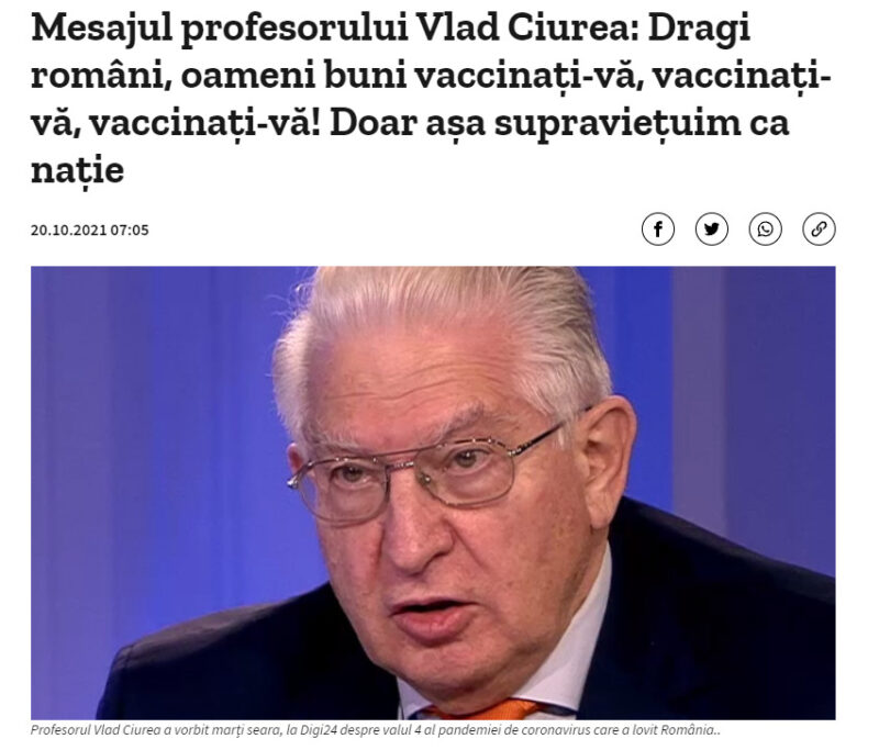 Mesajul medicului leninist Vlad Ciurea : “Vaccinați-vă, vaccinați-vă, vaccinați-vă! Doar așa supraviețuim ca nație”