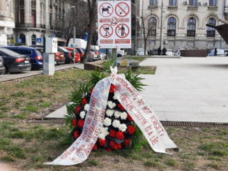 Aceştia au publicat şi două imagini, din care se văd doi bărbaţi care depun o coroană de flori cu mesaje negaţioniste.
