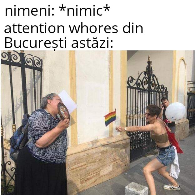 De cealaltă parte, parada bolunzilor a fost în culori stridente, cu personaje dubioase, păr vopsit verde, haine de femeie pe bărbați, curve în țâțele goale… mizeria morală devenită motiv de mândrie s-a revărsat împotriva bucureștenilor: