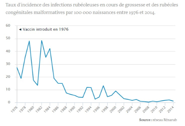 În mod similar, unele vârfuri sunt vizibile în ciuda vaccinării împotriva rubeolei în anii 93, 94, 97 sau 2000. Dacă doar vaccinarea a fost sursa de lichidare a bolii la mamele însărcinate cu riscuri pentru copilul lor nenăscut, aceste vârfuri nu ar trebui să existe. Variația ratei de vaccinare nu este o variabilă suficientă de la un an la altul. Să admitem aici, însă, că vaccinarea rămâne predominantă, dar sunt evident și alți factori.
