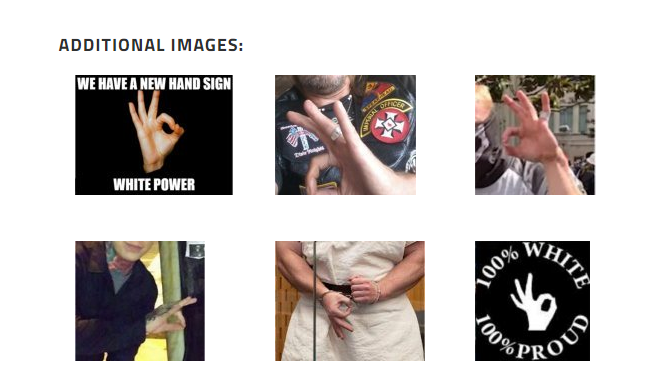 Iată o primă dovadă că Mircea Badea este extremist, acesta a făcut semnul supremasismului alb în direct, simbol consemnat în librăria urii a Ligii Anti-Defăimare din Statele Unite ale Americii (sursă), unde apare alături de explicația semnificației sale. Rerpezintă “puterea albă”, strigăt de luptă al teroriștilor albi armați, dar și a skinheazilor de tip ultras, desenatori de zvastici pe ziduri și bătăuși de țigani pe stadion.