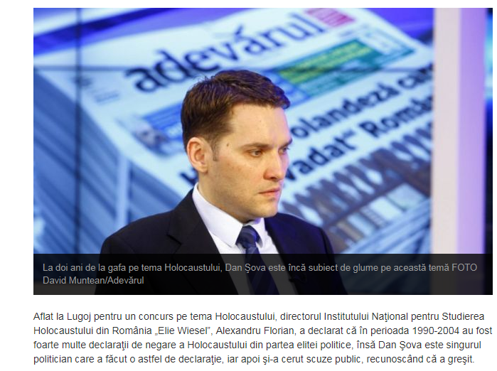 [1] Cf. http://www.hotnews.ro/stiri-esential-11689683-plangere-penala-impotriva-lui-dan-sova-privind-afirmatiile-despre-holocaust.htm; http://adevarul.ro/locale/timisoara/dan-Sova-iertat-negat-holocaustul-romania-este-singurul-lider-politic-negat-holocaustul-apoi-recunoscut-public-gresit-1_53d602a60d133766a8cd2a93/index.html; http://romanialibera.ro/opinii/comentarii/de-ce-neaga-sova-holocaustul-256058; http://www.ziare.com/articole/dan+sova+holocaust.