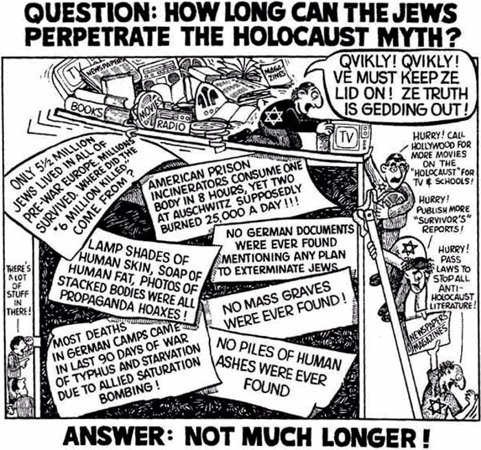 Dar, desigur, este lipsit de informare „aprofundată“ privind holocaustul, deoarece, după 1989, mintea i-a fost îmbîcsită de criminala propagandă holocaustistă, cu jidanii „arși“ la Auschwitz – deși, din maculatura lor holocau$ti$tă reiese că preponderent ar fi fost gazați, nu „arși“!