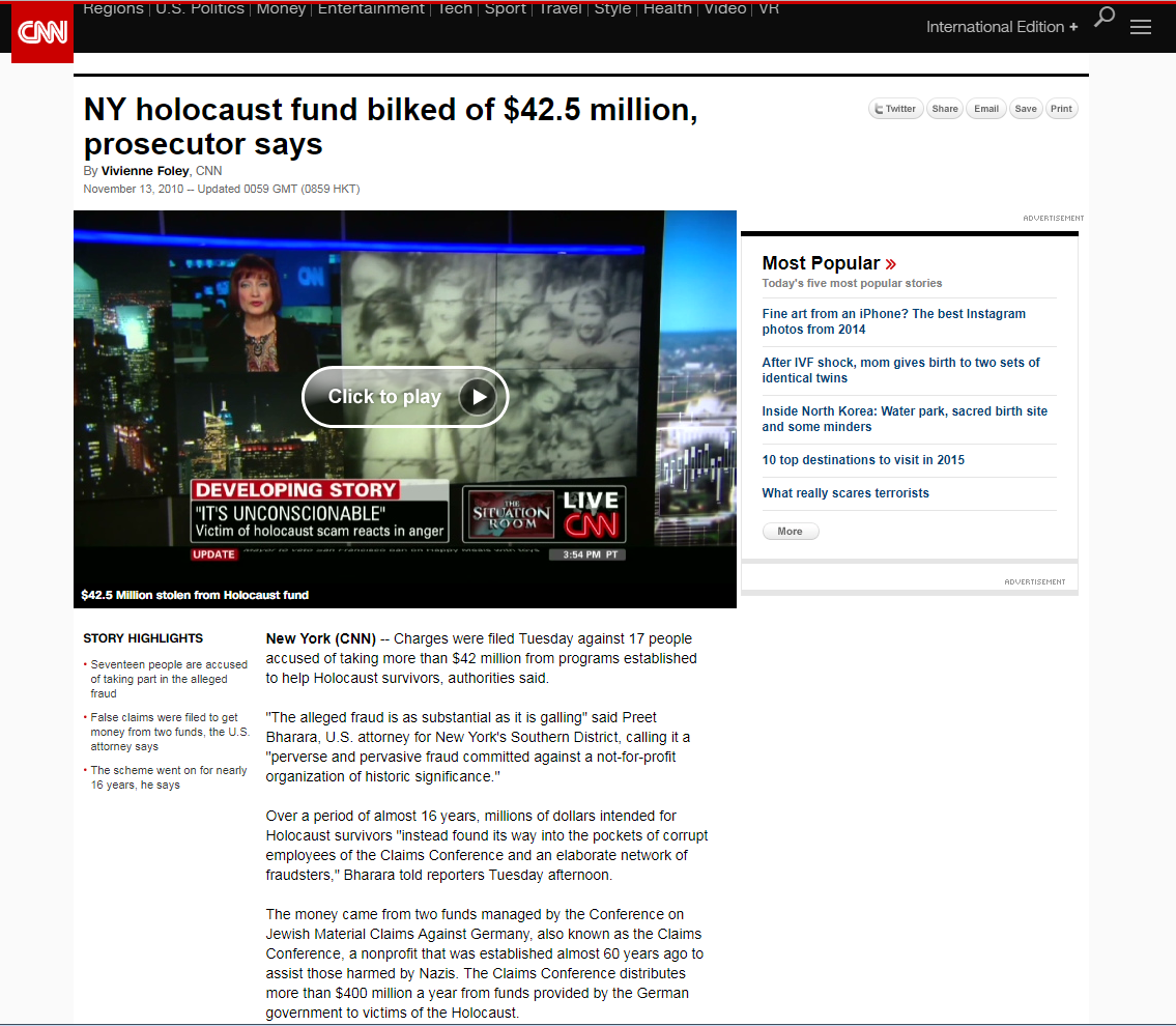 Efraim Zuroff împînzise panourile publicitare din București – și, fără îndoială, și din țară – cu un afiș intitulat ULTIMA ȘANSĂ[14], în care îndemna cetățenii României să-i denunțe pe presupușii români vinovați de holocaustarea jidanilor, caz în care vor primi 10.000 de dolari.