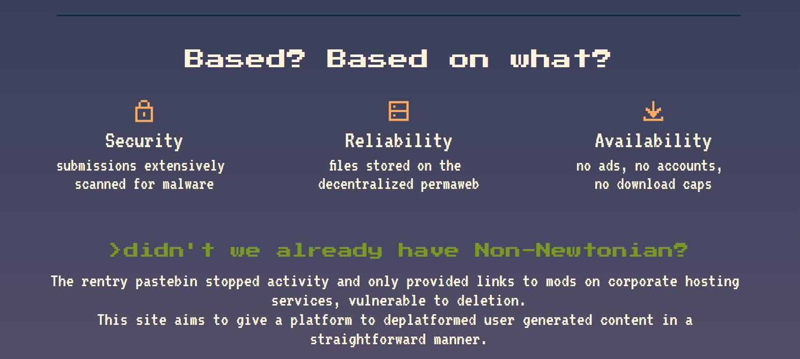 So I was reading the above article on a different site and began searching for a non-woke alternative for NexusMods. It did not take long to find out about BasedMods.