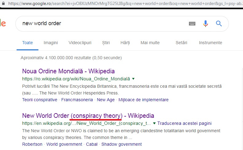 Pagina de wikipedia în engleză destinată Noii Ordini Mondiale are în dreptul ei scris “teorie conspiraționistă”. Ei oferă destul de multe informații, destul de exacte pentru o “conspirație nebună”….