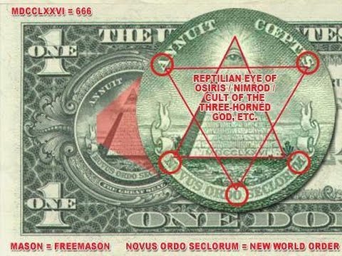 Insigna ordinului iluminaților a apărut pentru prima oară pe partea inversă a bancnotelor americane de un dolar în 1933. Se poate citi, la baza piramidei de 13 etaje, anul 1776 (MDCCLXVI în cifre romane).