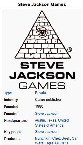 Chiar logo-ul firmei lui Steve Jackson face referire directă la Ordinul Illuminati.