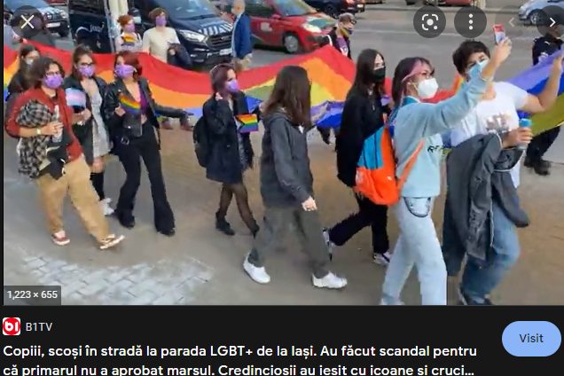Atunci au fost aduși copii de liceu să defileze pe străzi cu steagul LGBT, iar comunitatea creștină din Iași a reacționat printr-o manifestație proprie.