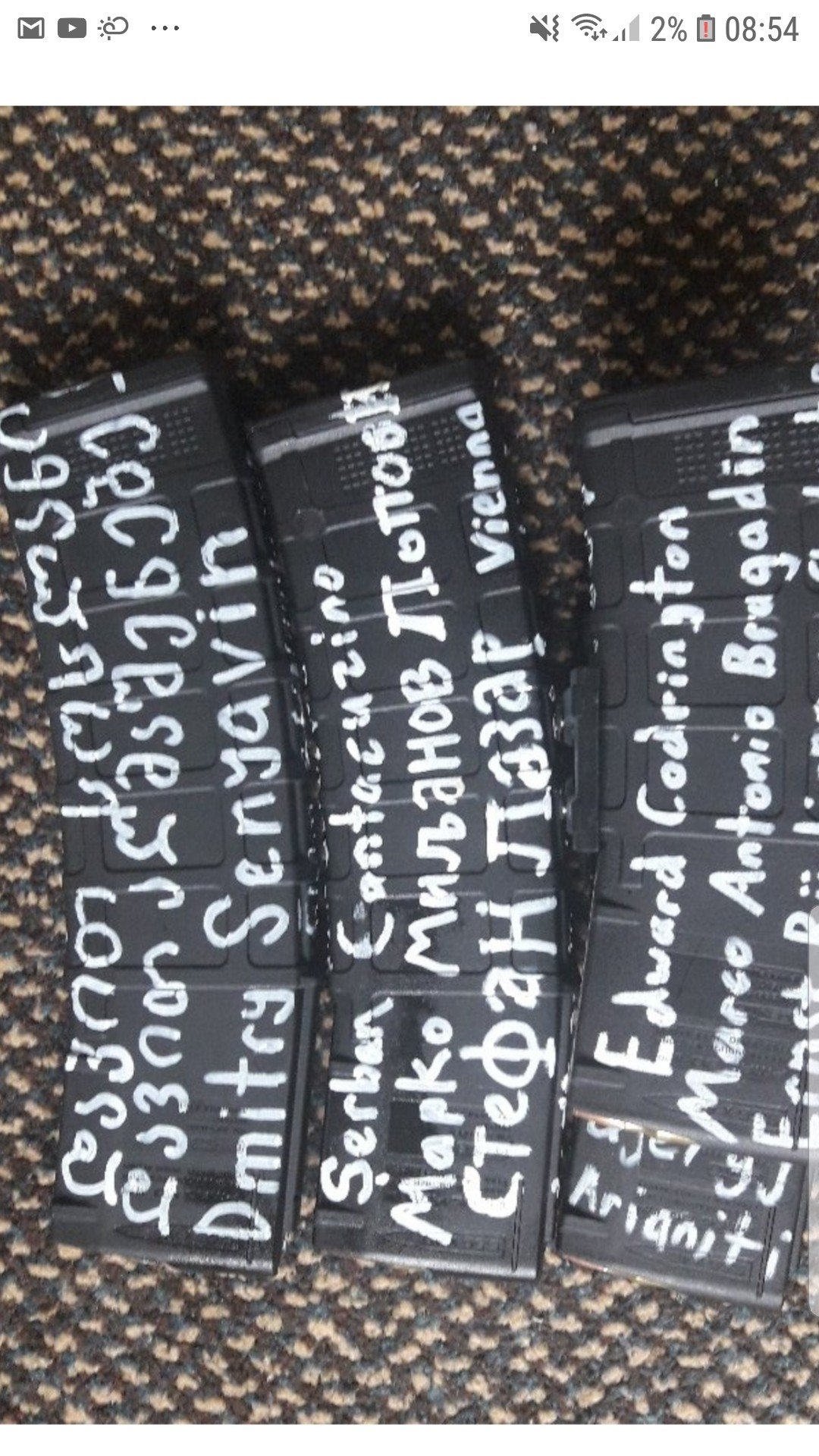 De asemenea, Brenton a înscris referințe istorice pe armele sale, mai ales bătălii împotriva invaziilor musulmane – uimitor este faptul că, pe unul dintre încărcătoare, figura numele lui Șerban Cantacuzino! -, dar și numele victimelor atacurilor teroriste săvârșite de musulmani în Europa.