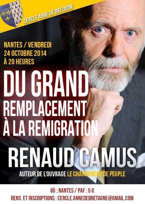 Renaud Camus a devenit aparent liderul spiritual principal al unei mișcări internaționale de trezire, care a decis să elimine fizic musulmanii din țările occidentale. Obiectivul acestei mișcări este de a opri invazia musulmanilor, apărându-și țările, neamurile, chiar patrimoniul genetic cu armele în mână și pregătiți să meargă până la capăt.