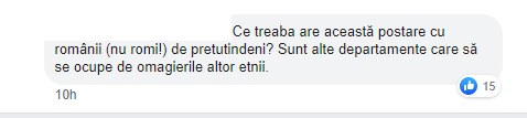 Anunțul pe Facebook are relativ puține comentarii pentru că s-au înlăturat majoritatea care erau critice la adresa țiganilor.
