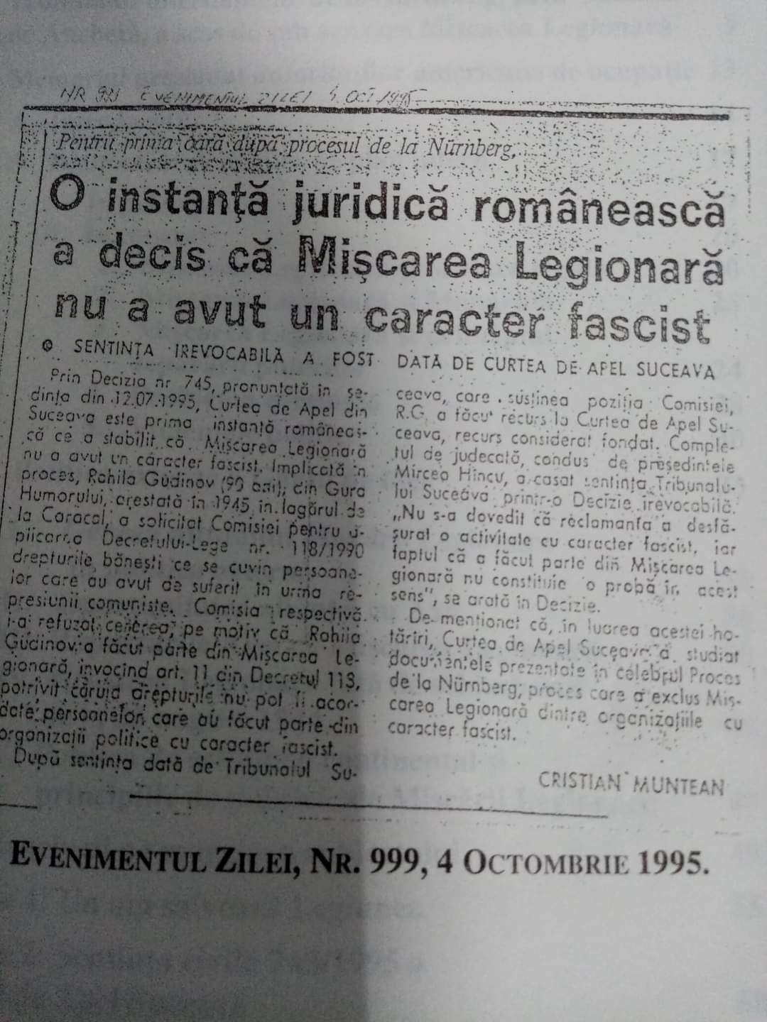 Home / Educativ / O instanță juridică românească a decis că Mișcarea Legionară nu a avut un caracter fascist (1995)