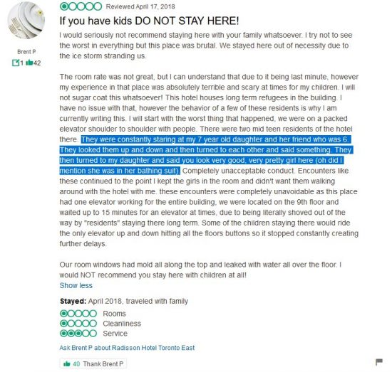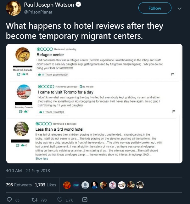 Urmează încă un prost canadian. El deține un hotel și s-a gândit că este ok, fiind fan Justin Trudeau, să ofere cazare gratis unor suboameni care doresc să îmbogățească cultural Canada.