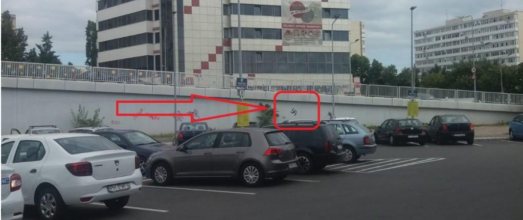 Pe 16 august, o cititoare care și-a făcut cumpărăturile de la magazinul Lidl Vest a observat că pe zidul de sprijin al podului Mărășești a fost aplicat un simbol nazist interzis de legislație. Este vorba de o svastică, un simbol de bază al grupărilor neo-naziste și asimilată regimului lui Hitler.
