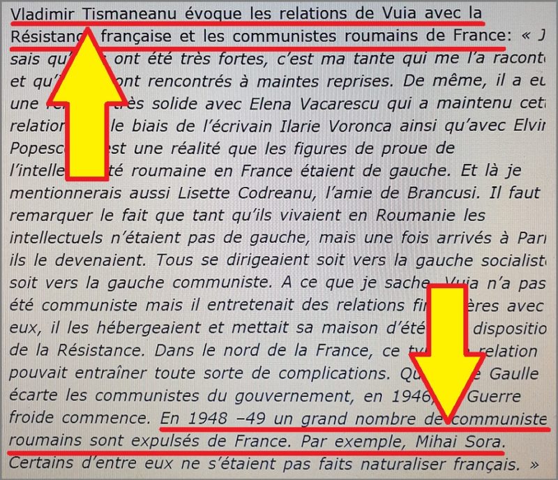 S-a ajuns pînă acolo, încît Vladimir Tismăneanu, odrasla unui dintre cei mai nenorociţi stalinişti care au instalat comunismul în România, să ameninţe în stînga şi-n dreapta, uitînd că el însuşi a fost cel care a aruncat primele zoaie pe imaginea lui Mihai Şora, într-un interviu din 2014 pentru Radio România Internaţional, în care vorbea tocmai despre „comuniştii români expulzaţi din Franţa”, dîndu-l ca exemplu chiar pe Mihai Şora, pe care acum zice că-l apără: