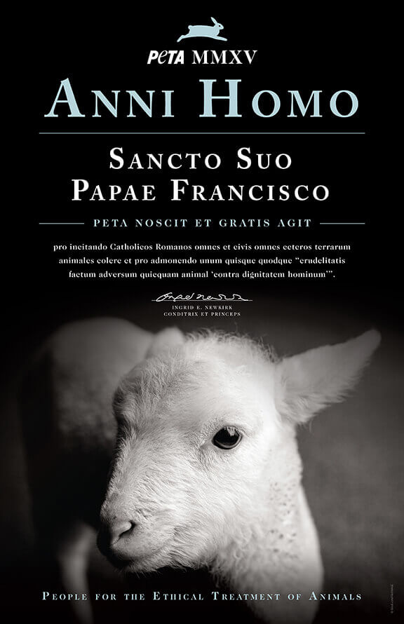 Papa a devenit Anul Omului al Organizației PETA (organizație care sub masca protecției animalelor promovează veganismul și organizează proteste vegane) [link]