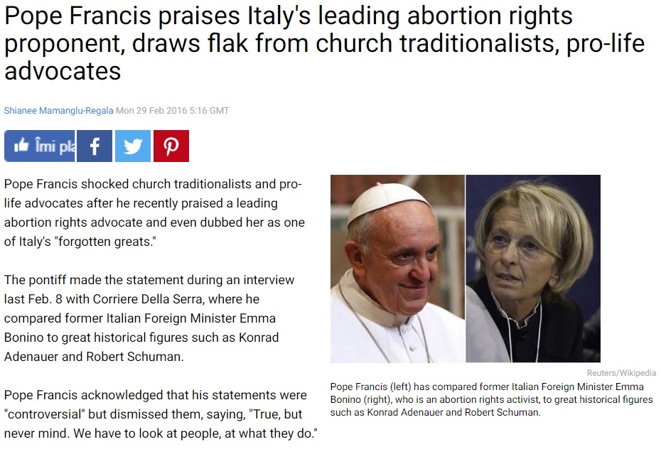 Papa a dat dovadă de progresism și a anunțat că este de acord cu contracepția în anumite circumstanțe ba chiar a lăudat o activistă pro-avort.