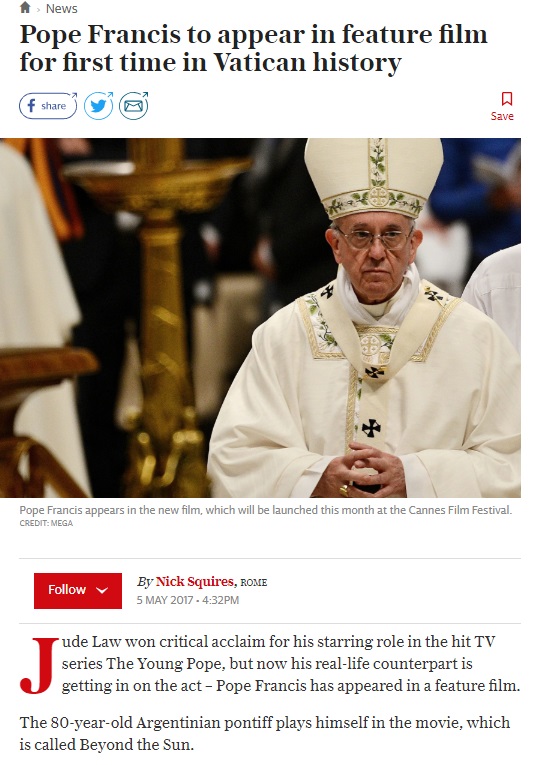 Papa Francis apare într-un film. Este pentru prima oară în istorie când un Papă face așa ceva.