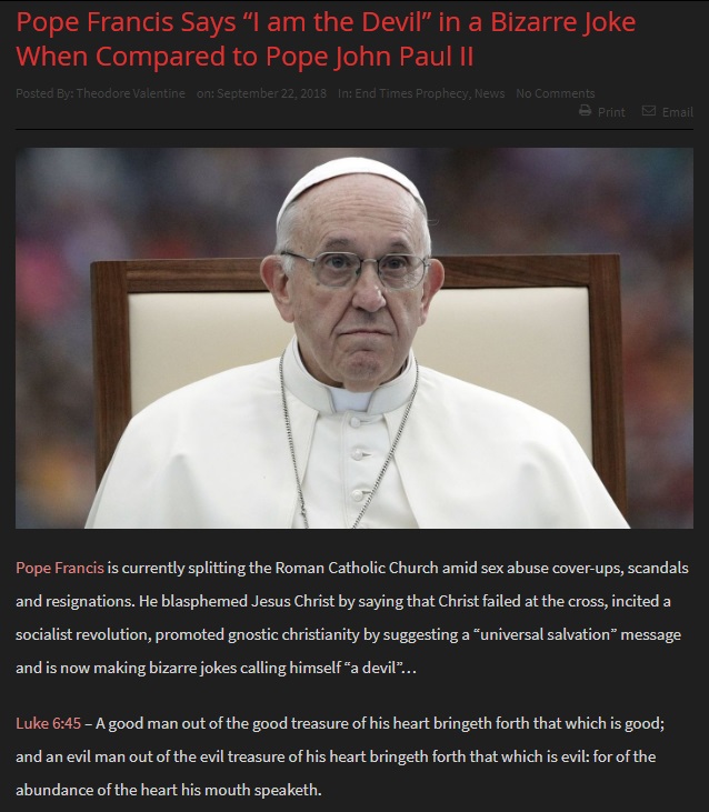 Din ce în ce mai multi catolici sunt convinși ca acest Papa este falsul profet, ce precede Antihristul, și urmărindu-i activitatea se poate înțelege de ce.