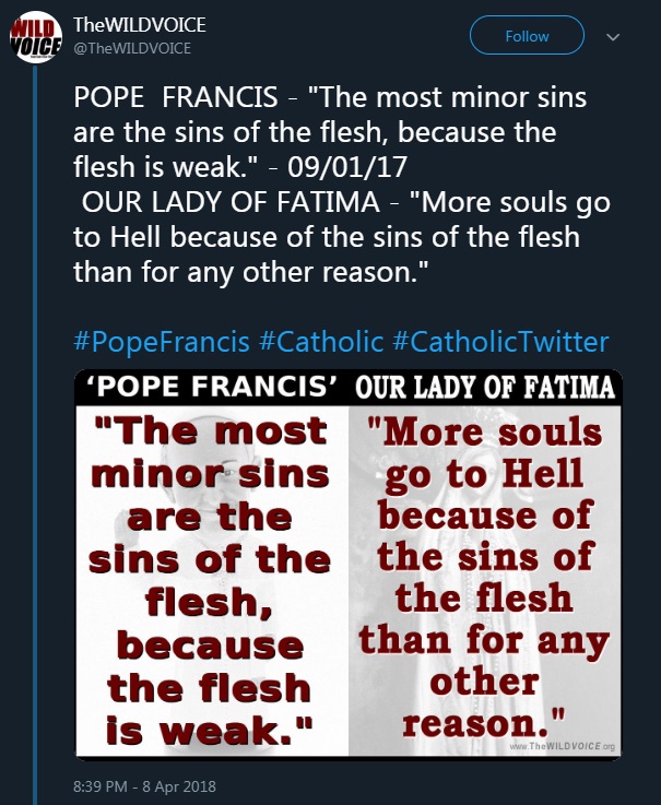 Pontiful a spus: *Cele mai mici păcate sunt păcatele cărnii*. Cu alte cuvinte a incurajat la fornicație.
