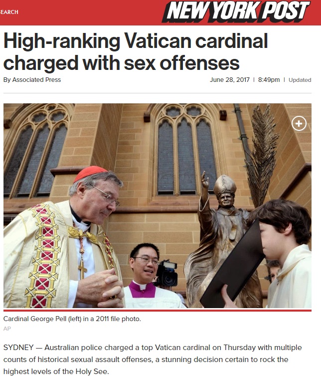 Cardinalul George Pell, consilierul financiar principal al papei Francis și care deține cel mai înalt rang catolic din Australia, este acuzat de abuz sexual și este acuzat că face parte dintr-o rețea pedofilă.