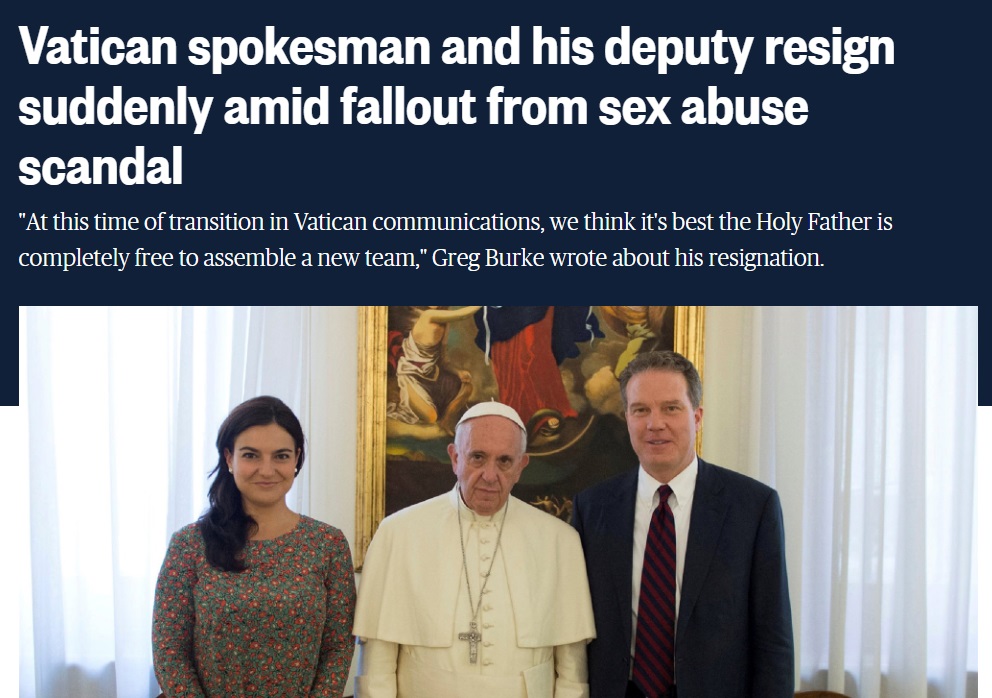 Purtătorul de cuvânt al Vaticanului, dar și ajutorul acestuia demisionează în urma unui scandal sexual.