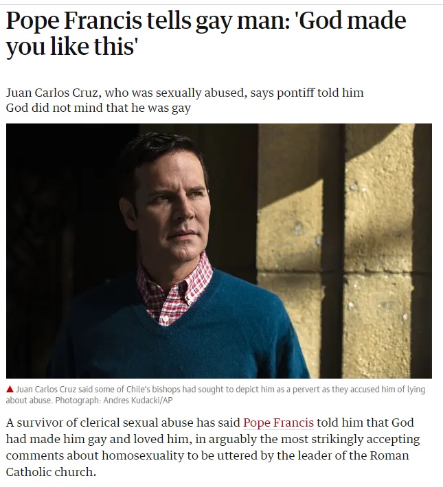 Pontiful a spus unui bărbat gay *Dumnezeu te-a făcut așa*. Desigur bărbatul este victimă a abuzului sexual în cadrul Bisericii Catolice.