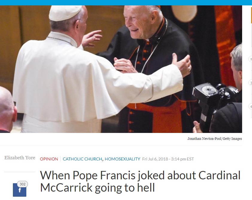 Papa face o nouă glumă, spunând despre cardinalul McCarrik că va ajunge în iad. Același Mccarrik a cărui abuzuri sexuale au fost acoperite cu ajutorul lui Francis.
