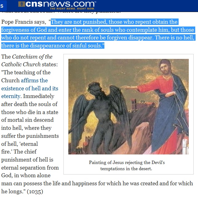 Francis declară: *Nu există iad, este doar dispariția sufletelor păcătoase* , negând astfel din nou existența iadului.