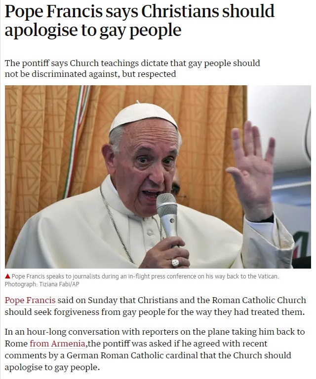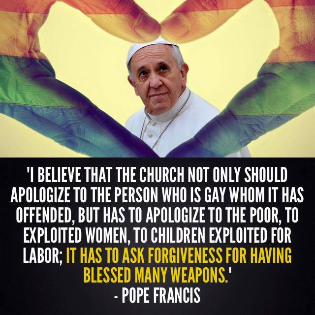Papa a spus că biserica ar trebui să își ceară iertare persoanelor homosexuale care se simt ofensate.