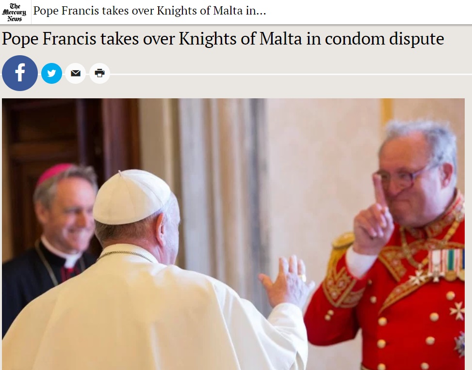 Papa între într-un conflict major cu Cavalerii Maltezi pe tema prezervativelor.