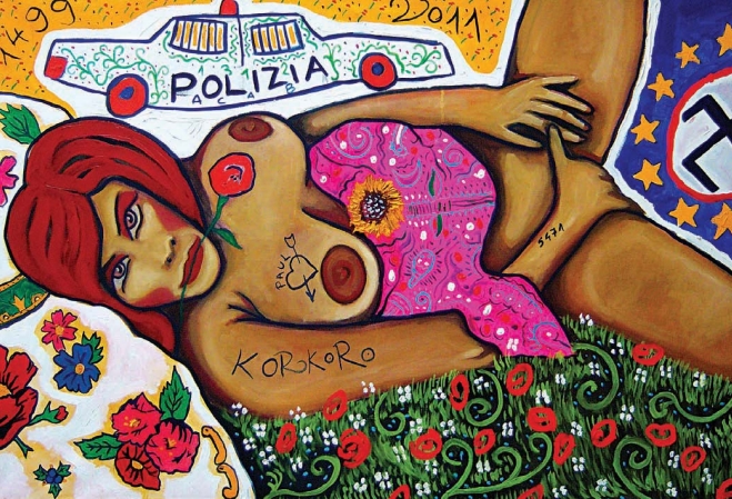 Sunt implicat politic de afară. Ca Manu Chao. Ştiu că probabil în Observatorul Cultural nu s-a scris de Manu Chao niciodată. Pe youtube căutaţi: politik kills. Cam aşa politic sunt eu. Să nu o mai dăm după gard. Mi s-a cerut încă de prin 2012 să fac nişte picturi împotriva lui Ponta. Nu spun de către cine. Am refuzat. Eu nu fac lucruri la comandă. Nu sunt pro nimeni. Sunt toţi aceeaşi mizerie. Spre deosebire de mulţi dintre colegii de breaslă , am refuzat să fiu de o parte sau alta pentru avantaje. Am rămas pictor, artist, om, ce vreţi voi. E foame mare în cultură şi unii se vând pe un şpriţ sau o vacanţă în ţări exotice. Apoi vin şi ne ţin predici angelice despre coloane vertebrale. Există încă falsă idee că “ai noştri” sunt mai buni decât “ai lor”.