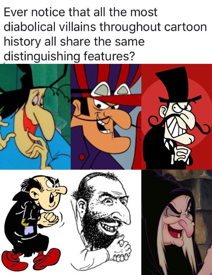 Ai observat că toate personajele negative din desene animate au aceleași trăsături faciale?