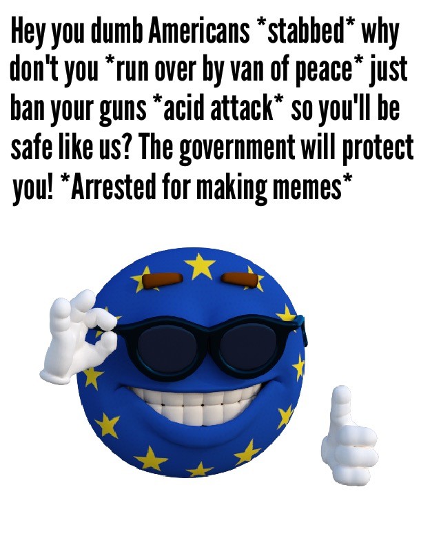 Hei, americani proști *injunghiat* de ce nu *călcat de un camion al păcii* interziceți dreptul de a purta arme *atac cu acid* ca să fiți în siguranță, ca și noi.