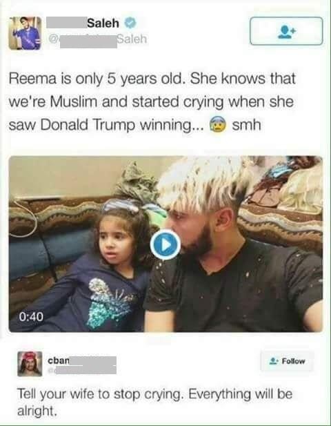 Rema are doar 5 ani. Știe că suntem musulmani, și a început să plângă când a văzut că Donald Trump a câștigat.