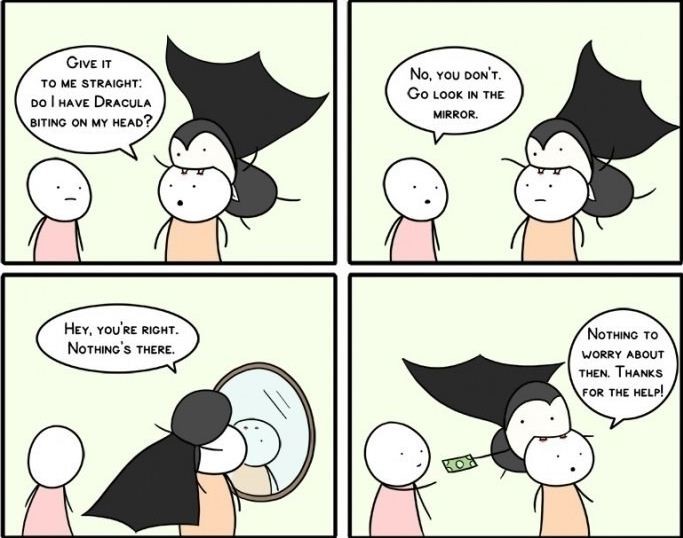 Cetățean: Spune-mi sincer, e un Dracula pe capul meu care mă mușcă și îmi suge sângele?