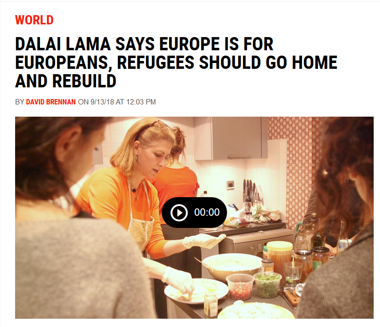 Dalai Lama (un refugiat) a spus că Europa aparține europenilor, iar refugiații ar trebuie să se întoarcă înapoi acasă, să își reconstruiască țara.