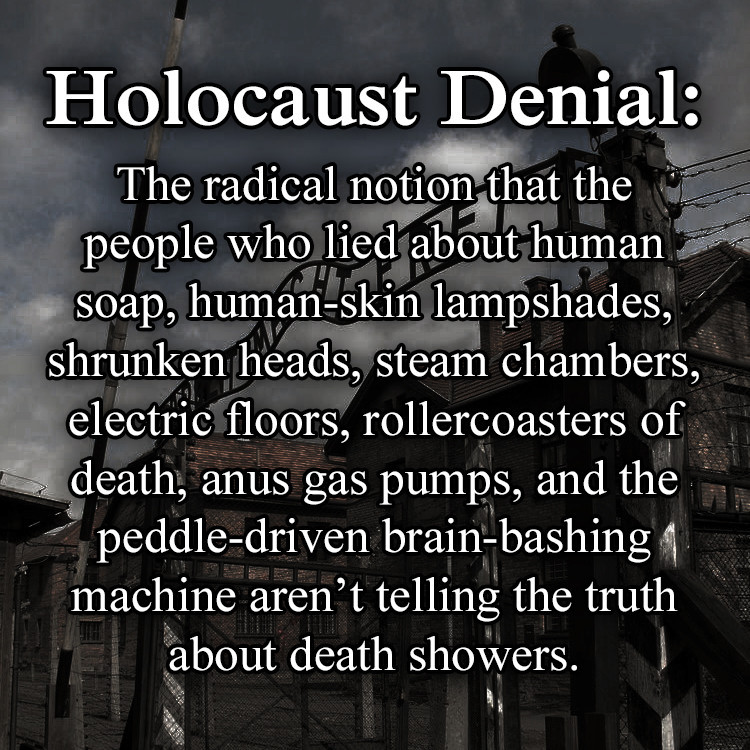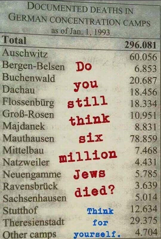 Ideea radicală că acele (((persoane))) care au mințit în legătură cu săpun făcut din grăsime umană, veioze create din piele umană, cameră cu aburi, podele electrice, montagne russe ale morții, pompe de gazare prin anus, mașini de strivirea creierului – nu au spus adevărul despre camere de gazare cu insecticid.