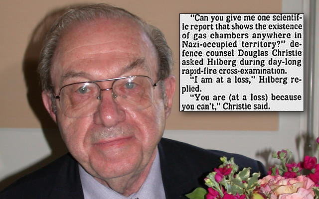 Poți să îmi arăți un raport științific ce demonstrează existența camerelor de gazare oriunde în teritoriile ocupate de naziști? avocatul apărării Douglas Christie îl întreabă pe Hilberg în tribunal.