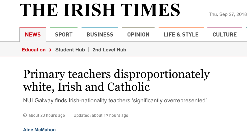 Învățătorii de școală primară din Irlanda sunt în mod disproporționat irlandezi, albi și catolici.